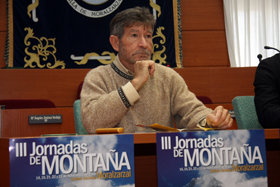 | Carlos Soria, en la presentación de las terceras Jornadas de Montaña |
