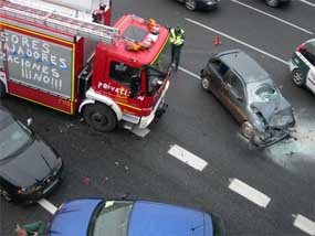 En la tarde del miércoles se produjo a la altura del kilómetro 39 de la A-6, en el término municipal de Collado Villalba, un espectacular accidente -obligando a intervenir a Guardia Civil, efectivos de Bomberos y también a un helicóptero del SUMMA-, como consecuencia del choque de un turismo contra unos conos en el carril de desaceleración. Este siniestro produjo a su vez otro accidente, en el que se vieron implicados otros dos turismos y un autobús, afortunadamente sin que se produjesen heridos de importancia. Más grave fue el impacto frontal entre un coche y un camión en el punto kilométrico 0,800 de la M-601, también Collado Villalba, ocurrido el martes sobre las 16.45 horas. El conductor del primer vehículo de 40 años murió prácticamente en el acto, mientras que el otro resultó herido leve, siendo trasladado al hospital de El Escorial.