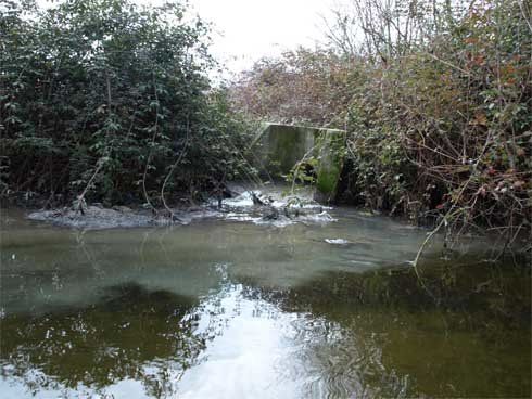 | El aliviadero vierte las aguas contaminadas al arroyo justo antes de entrar en El Pardo (Foto: R.F.) |
