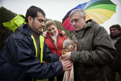 El viceconsejero destacó que “este ejemplar va a formar parte del programa de estudio y seguimiento de la especie que realiza la Comunidad en el marco de las medidas encaminadas a la conservación y mejora de las poblaciones en Madrid, donde en los últimos años sufrió un retroceso. Para ello irá provisto de un radiotransmisor, que nos permitirá conocer aspectos de su ecología y biología desde el mismo momento en que se libere y poder actuar si se detecta alguna amenaza”. “Este trabajo ya está dando sus frutos”, detalló Asúa. “Con este milano son seis los ejemplares marcados con transmisores; los cinco anteriores lo fueron con satélites GPS. Uno de estos ejemplares terminó criando en la Sierra de Guadarrama, de cuyo nido volaron dos jóvenes milanos reales, uno de los cuales se marcó en el nido con GPS”.