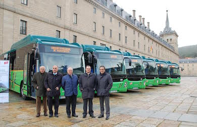 La Lonja del Real Monasterio de San Lorenzo de El Escorial ha sido el escenario elegido por el Consorcio Regional de Transportes de Madrid y la empresa Herranz para la presentación de seis nuevos autobuses de gas que darán servicio a cuatro líneas interurbanas y una urbana en la localidad.