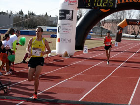 Youness Ait Hadi hizo valer el pronóstico y ganó el pasado domingo en Collado Villalba su cuarta Tragamillas, estableciendo el nuevo récord de la prueba en 1:08:28 horas. La inscripción a última hora de sus compatriotas Abdelhak Sabhi y Abida Ezamzami encareció un podio por el que luchó de forma denodada Juan Antonio Cuadrillero. El campeón guadarrameño -en la imagen superior precediendo en meta a Sabhi- cumplió con lo anunciado y no entró en el ritmo de Ait Hadi, para acabar jugándose el podio en el esprín del estadio. Allí no pudo con Ezamzami, pero sí con Sabhi. Su tercer puesto supuso su cuarto podio en la carrera.