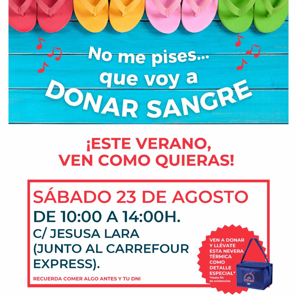 • Sábado 23 de agosto, de 10:00 a 14:00 h, en C/ Jesusa Lara (junto al Carrefour Express).