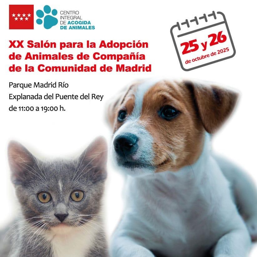 El próximo fin de semana, el Parque Madrid Río será el escenario del XX Salón para la Adopción de Animales de Compañía, un evento organizado por la Comunidad de Madrid en colaboración con el Ayuntamiento de Torrelodones y diversas administraciones públicas. Esta actividad se llevará a cabo los días 24 y 25 de octubre, en un horario que va desde las 11:00 hasta las 19:00 horas.