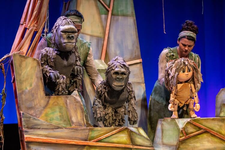 Títeres y escenografía: Un diseño visual cautivador que transporta al público al imaginario selvático.