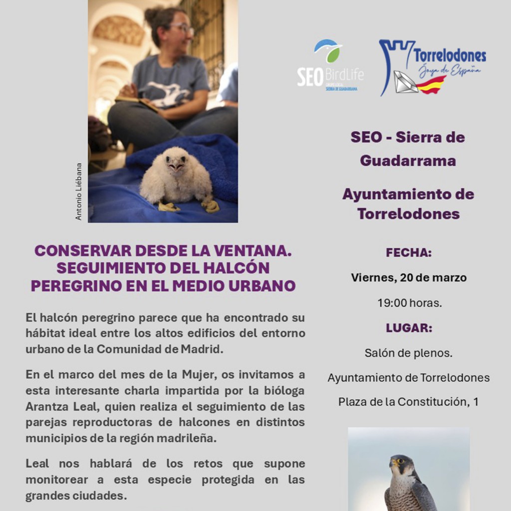 La bióloga Arantza Leal será la encargada de impartir la ponencia titulada “Conservar desde la ventana. Seguimiento del halcón peregrino en el medio urbano”. En esta charla, los asistentes tendrán la oportunidad de conocer la historia de varias parejas reproductoras de halcones que residen en distintos municipios de la Comunidad de Madrid.