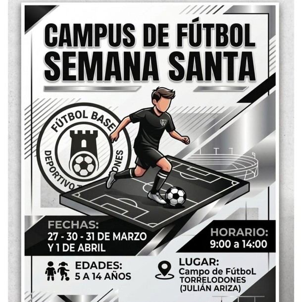 La escena del fútbol base en Torrelodones se encuentra en un momento destacado. Esta Semana Santa, el campo de fútbol Julián Ariza será el escenario del Campus de Semana Santa 26. Este evento, organizado por primera vez por el club Deportivo Torrelodones, ofrecerá a los jóvenes la oportunidad de disfrutar del deporte durante sus vacaciones escolares, con actividades programadas entre las 09:00 y las 14:00 h.