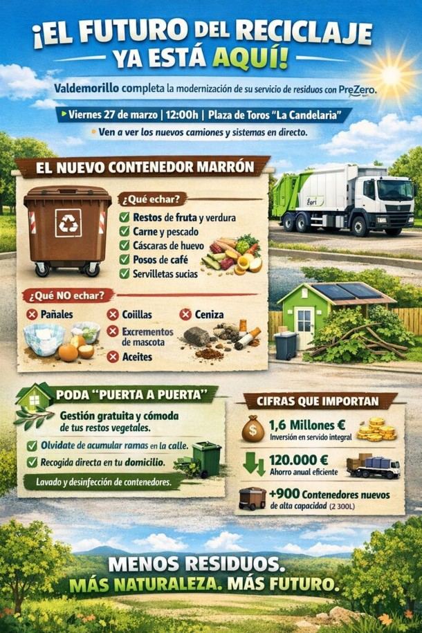 Además, se presentará el nuevo contenedor marrón, diseñado específicamente para garantizar la recogida separada de materia orgánica. Esta iniciativa busca fomentar una mayor conciencia ambiental entre los ciudadanos y mejorar la gestión de residuos en la localidad.