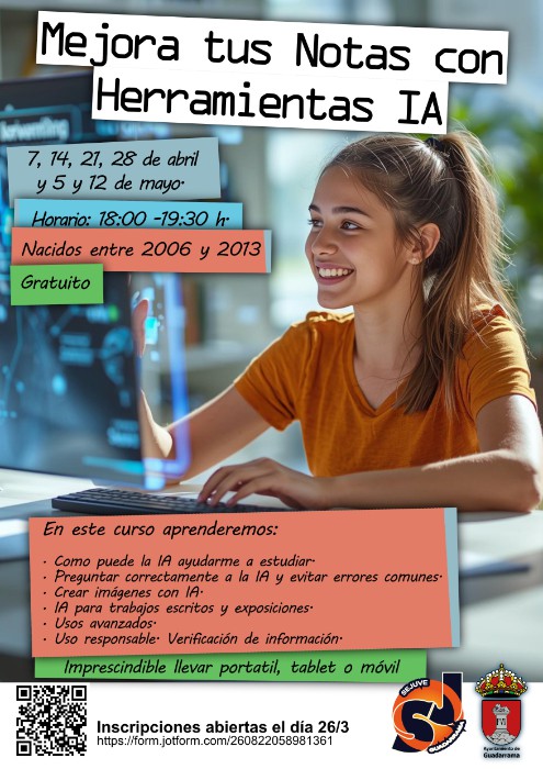 La Concejalía de Juventud del Ayuntamiento de Guadarrama ha lanzado un innovador taller cuyo propósito es ayudar a los estudiantes a mejorar sus calificaciones mediante el uso de herramientas de inteligencia artificial. Esta iniciativa está dirigida a jóvenes nacidos entre 2006 y 2013 que buscan optimizar su tiempo de estudio.