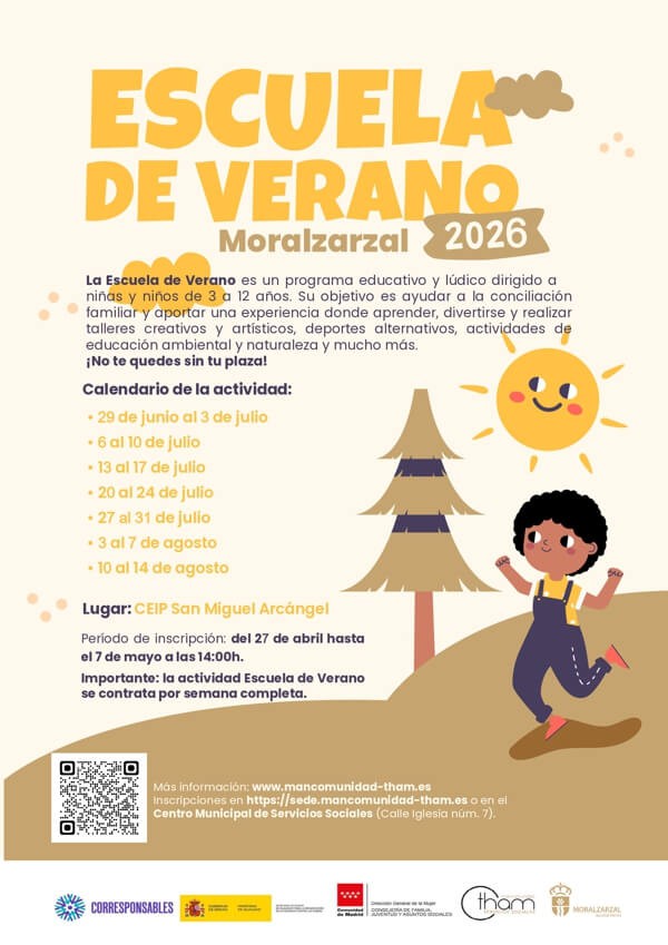 El Ayuntamiento de Moralzarzal, en colaboración con la Mancomunidad de Servicios Sociales THAM, ha anunciado el lanzamiento de una nueva edición de la Escuela de Verano para el año 2026.
